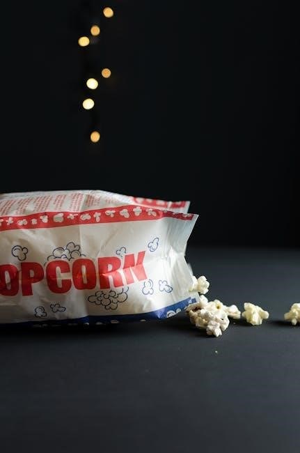 Verify all components are present before proceeding. The instruction manual, a crucial resource, should also be included. Familiarize yourself with each part – the motorized stir rod is key, and the butter well is designed for convenient buttering during the popping process. Ensure no parts are damaged during shipping.
